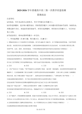 高三政治--河南省信阳市2026届高三第一次教学质量检测地理
