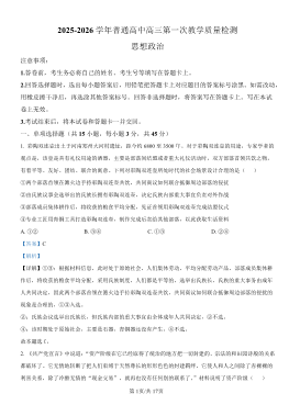 高三政治答案--河南省信阳市2026届高三第一次教学质量检测地理