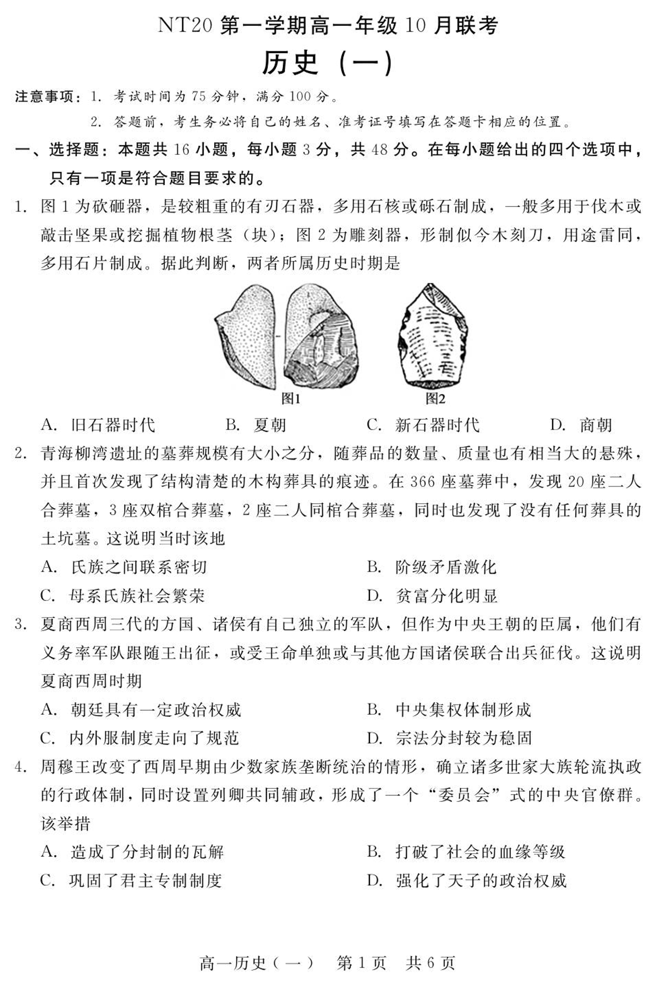 高三历史--河北省NT20名校联合体2025-2026学年高一上学期10月联考