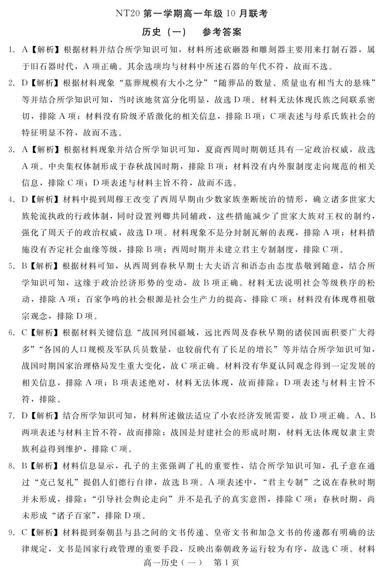 高三历史答案--河北省NT20名校联合体2025-2026学年高一上学期10月联考