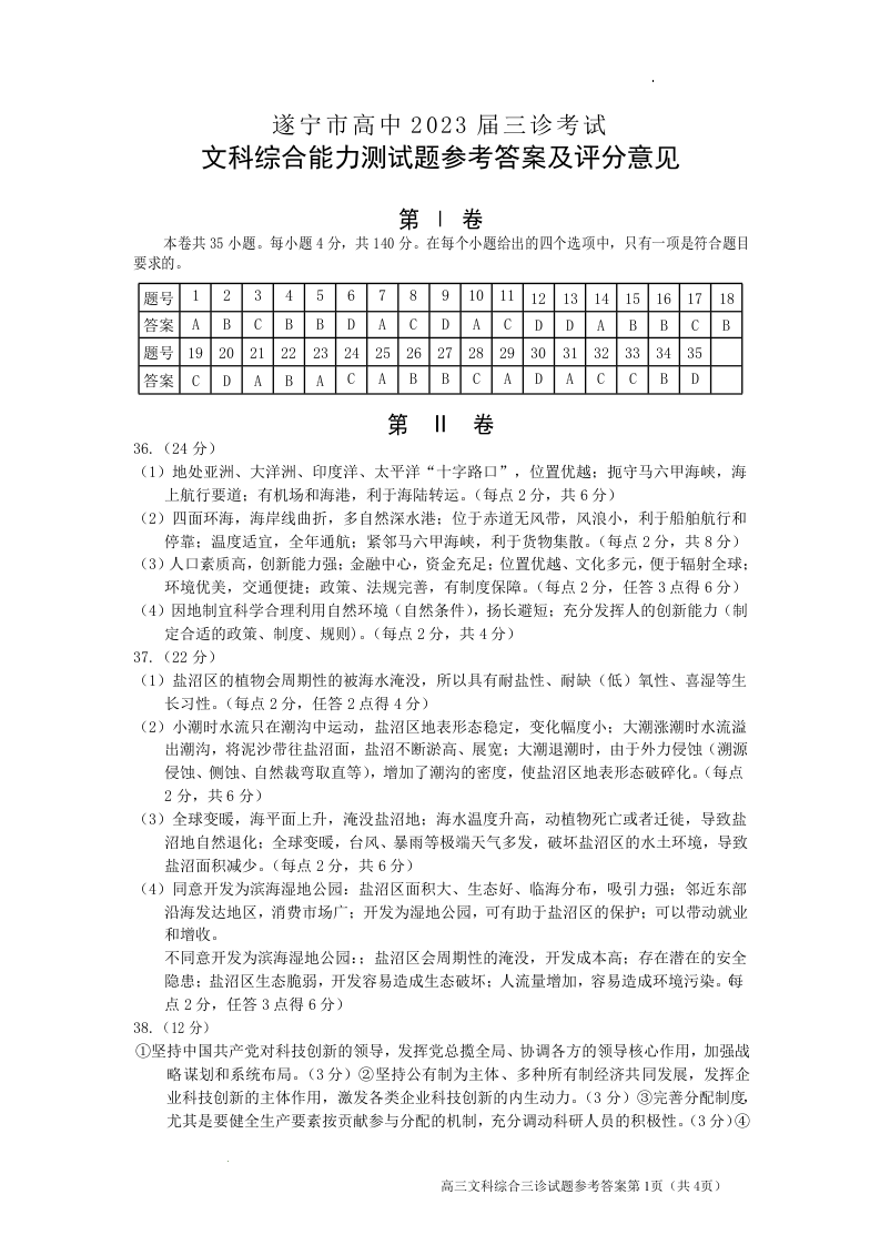 高三文综答案--四川省遂宁市2023届高三下学期三模