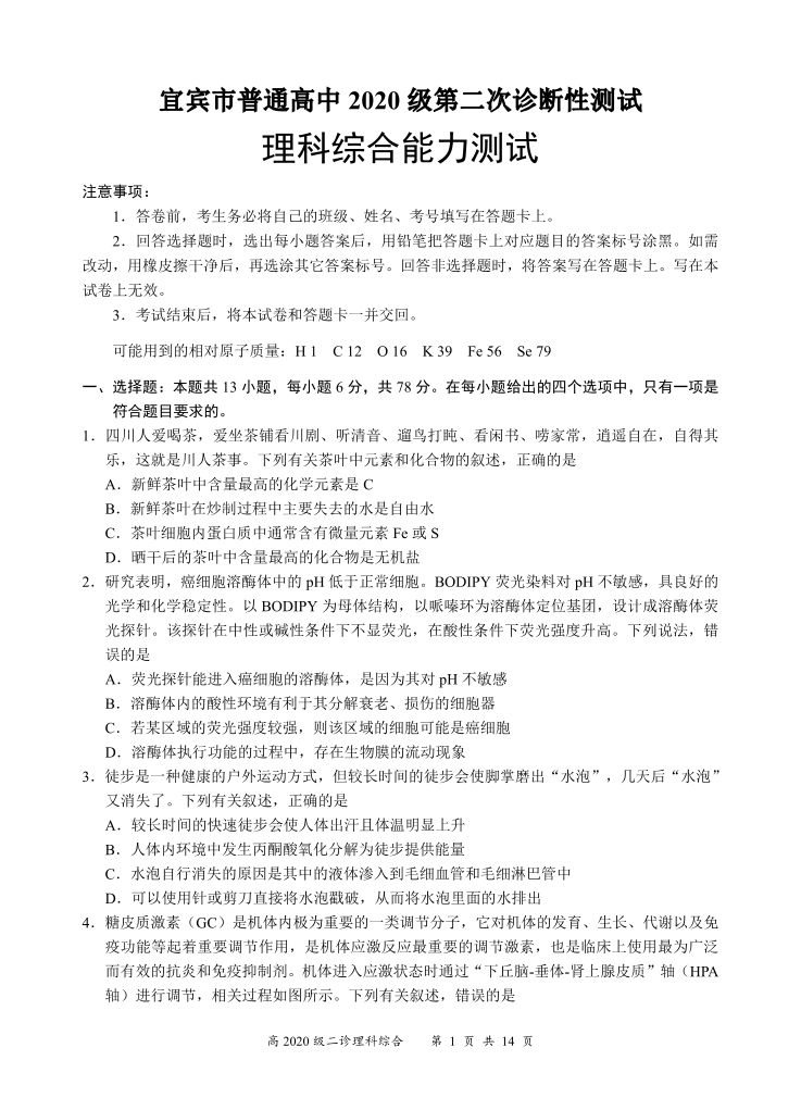 高三理综--四川省宜宾市2023届高三下学期(二诊)