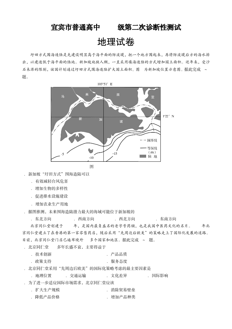 高三文综地理--四川省宜宾市2023届高三下学期(二诊)