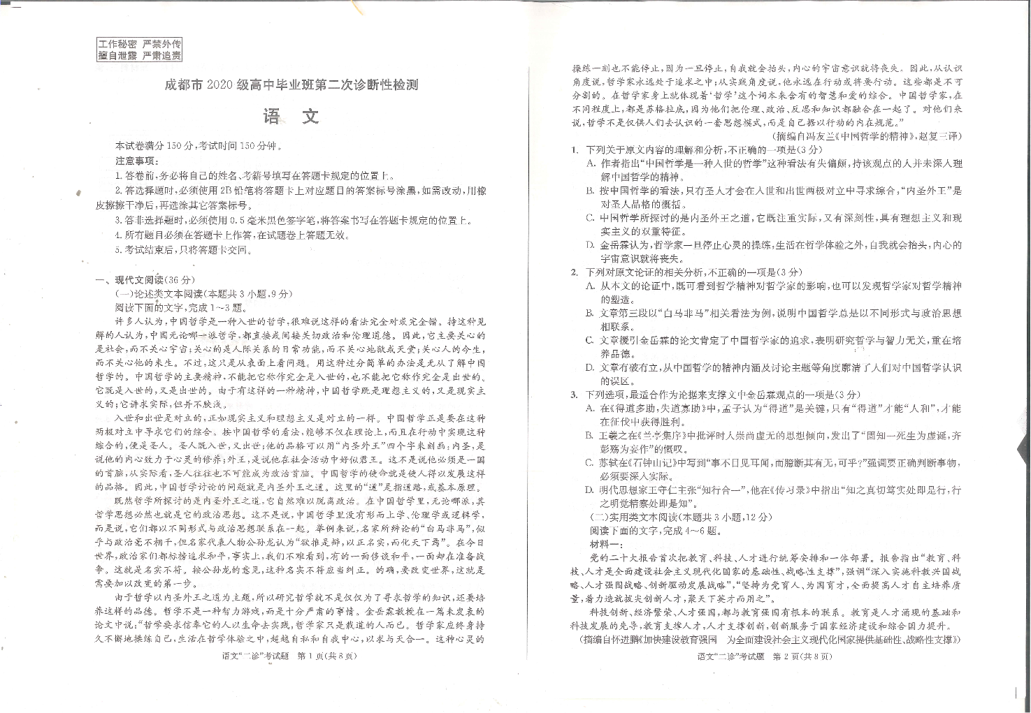 高三语文--四川省成都市2023届高三第二次诊断性检测