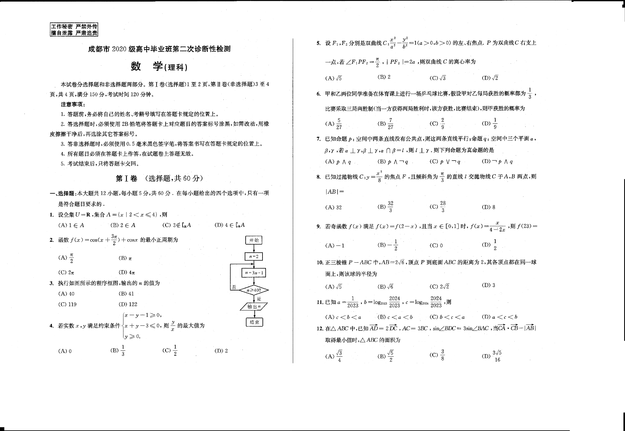 高三理数--四川省成都市2023届高三第二次诊断性检测