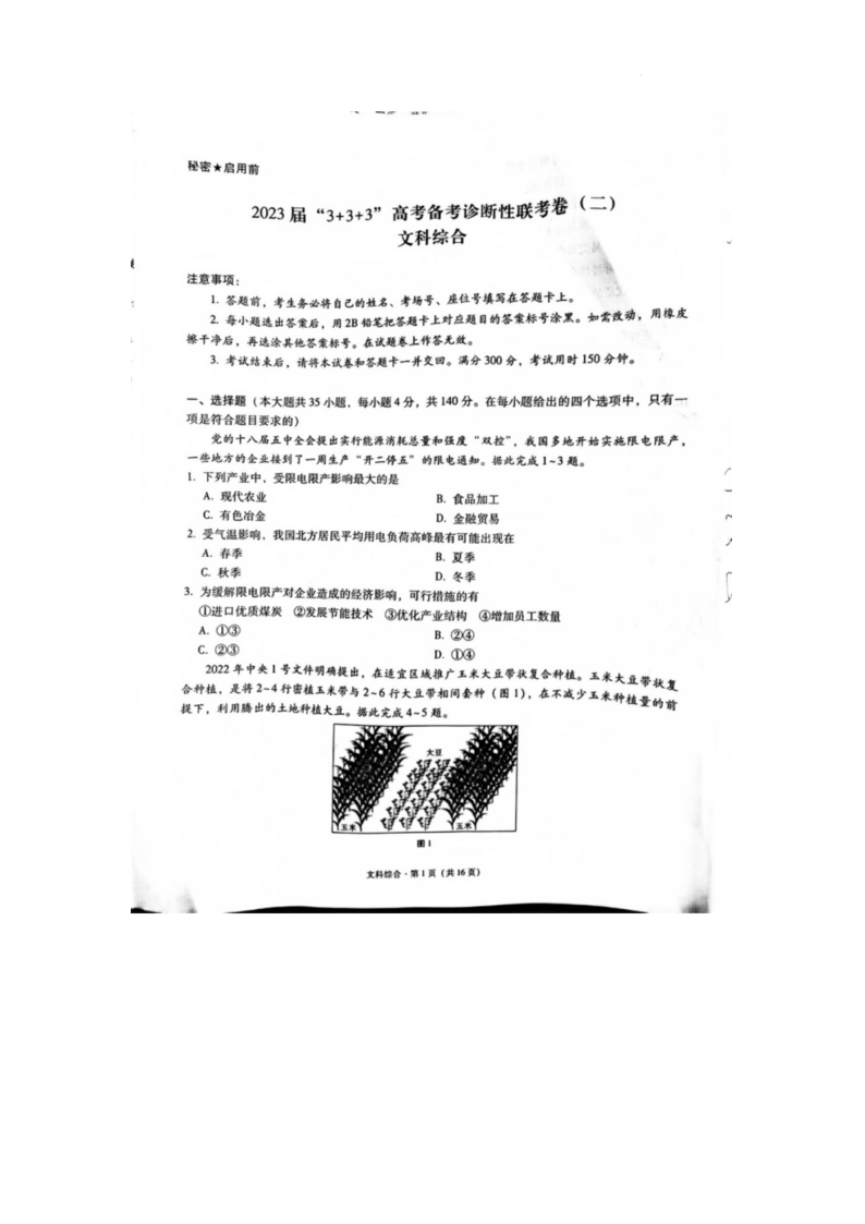 高三文综--贵州省2023届3+3+3高考备考诊断性联考(二)