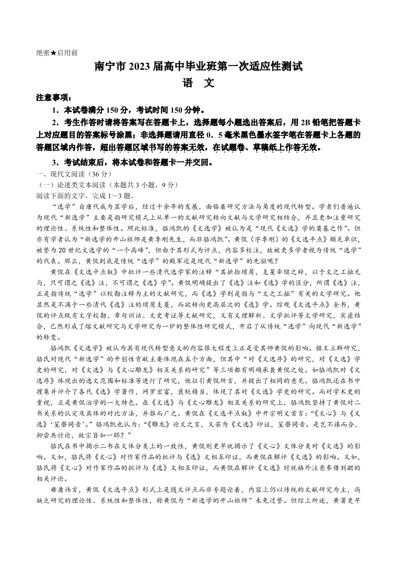 高三语文+答案--广西壮族自治区南宁市2023届高中毕业班第一次适应性测试