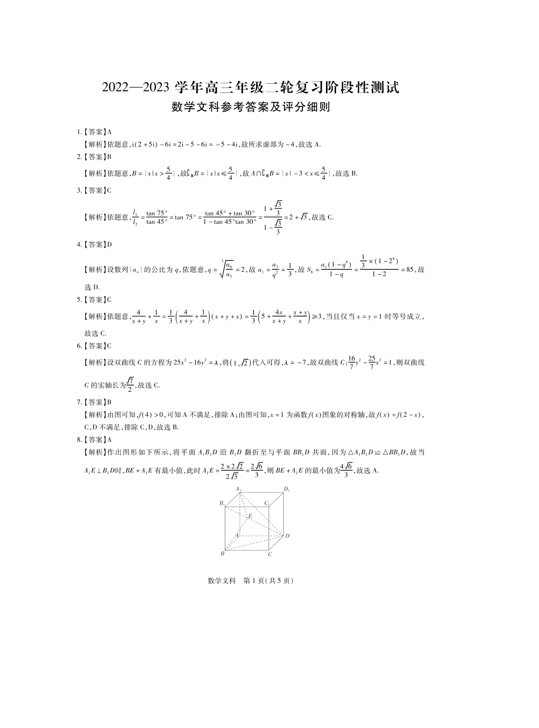 高三文数答案--广西壮族自治区2023届高三下学期第二次高考模拟