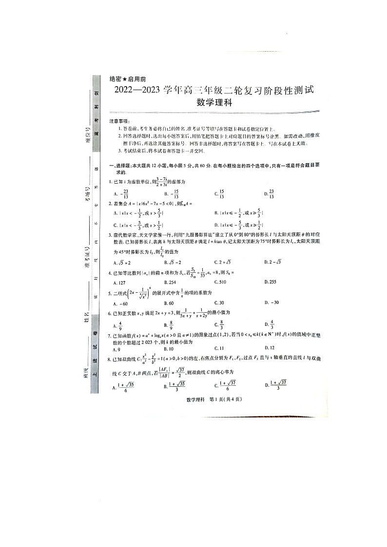 高三理数--广西壮族自治区2023届高三下学期第二次高考模拟