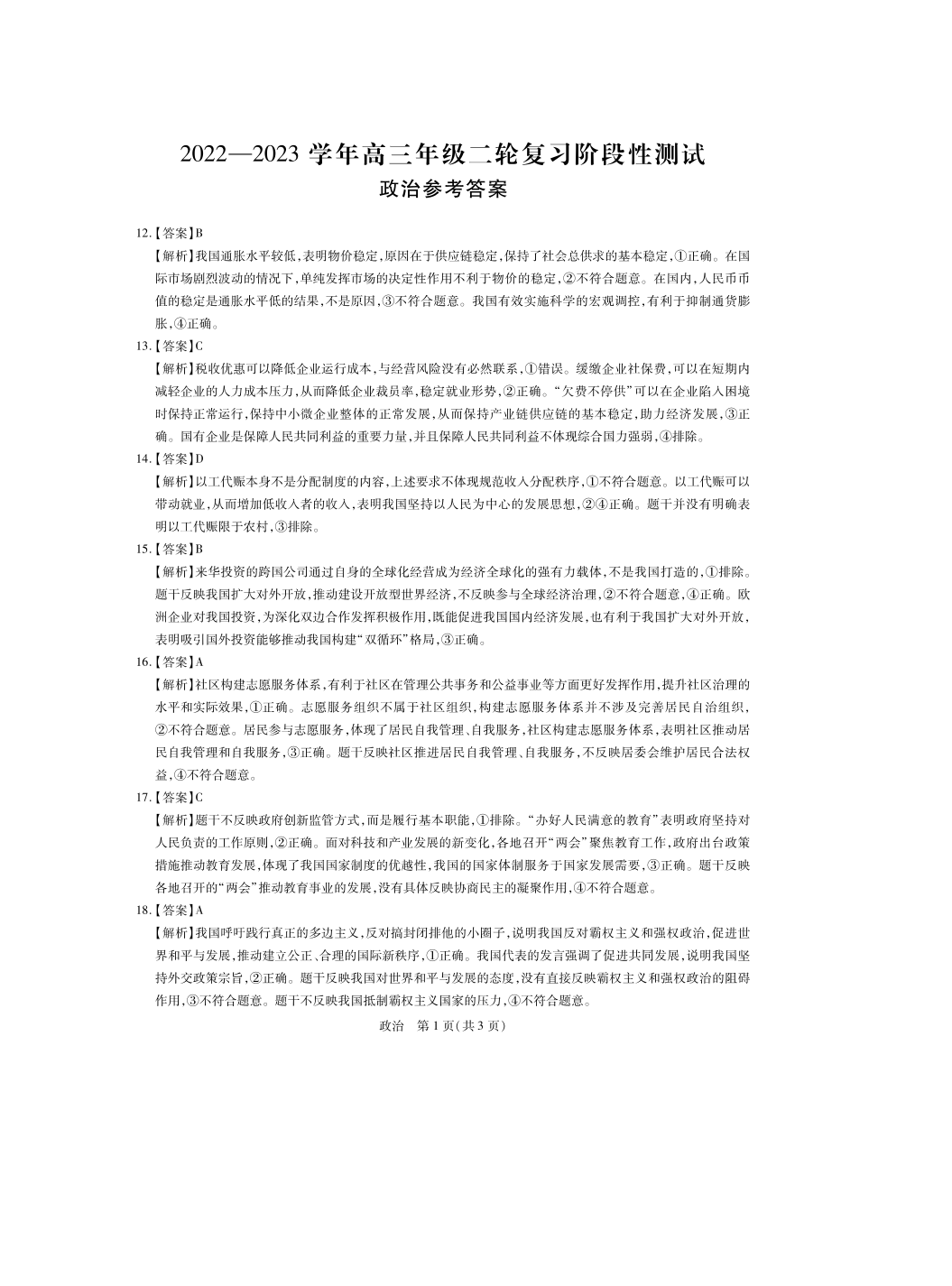 高三文综政治答案--广西壮族自治区2023届高三下学期第二次高考模拟