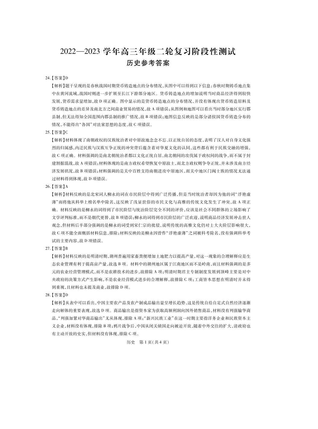 高三文综历史答案--广西壮族自治区2023届高三下学期第二次高考模拟