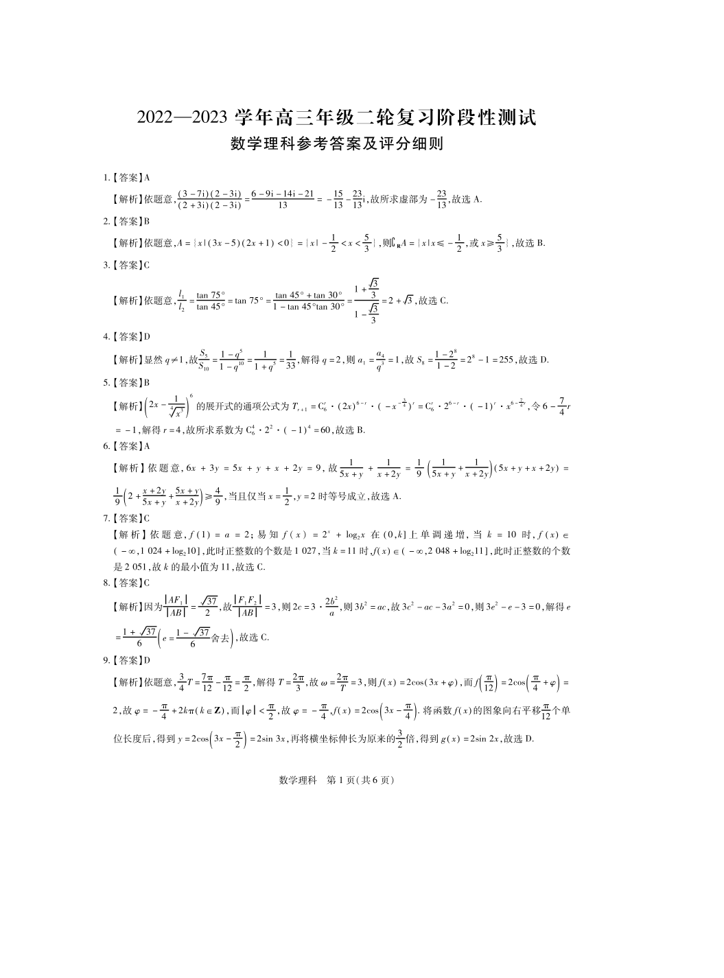 高三理数答案--广西壮族自治区2023届高三下学期第二次高考模拟
