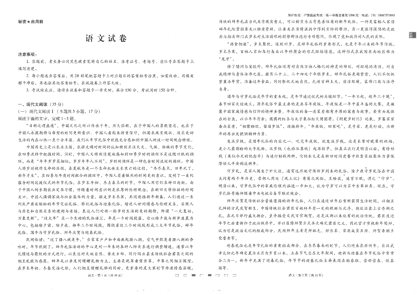 高三语文--云南师范大学附属中学2022-2023学年高三第十次高考适应性考试
