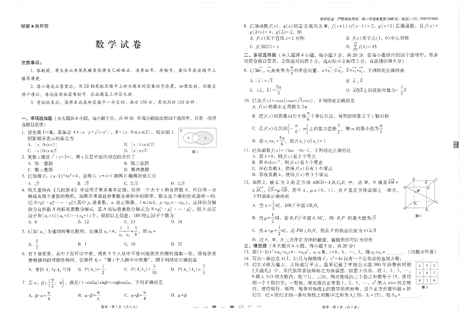 高三数学--云南师范大学附属中学2022-2023学年高三第十次高考适应性考试