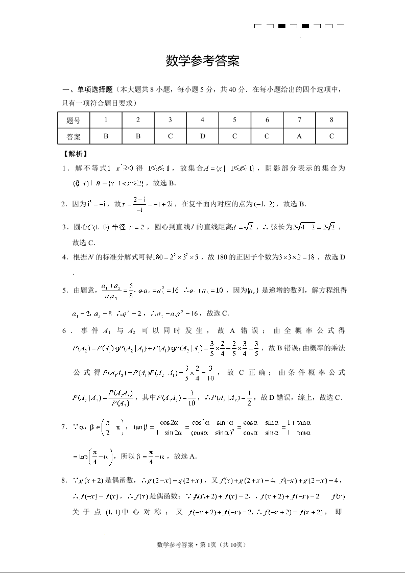 高三数学答案--云南师范大学附属中学2022-2023学年高三第十次高考适应性考试