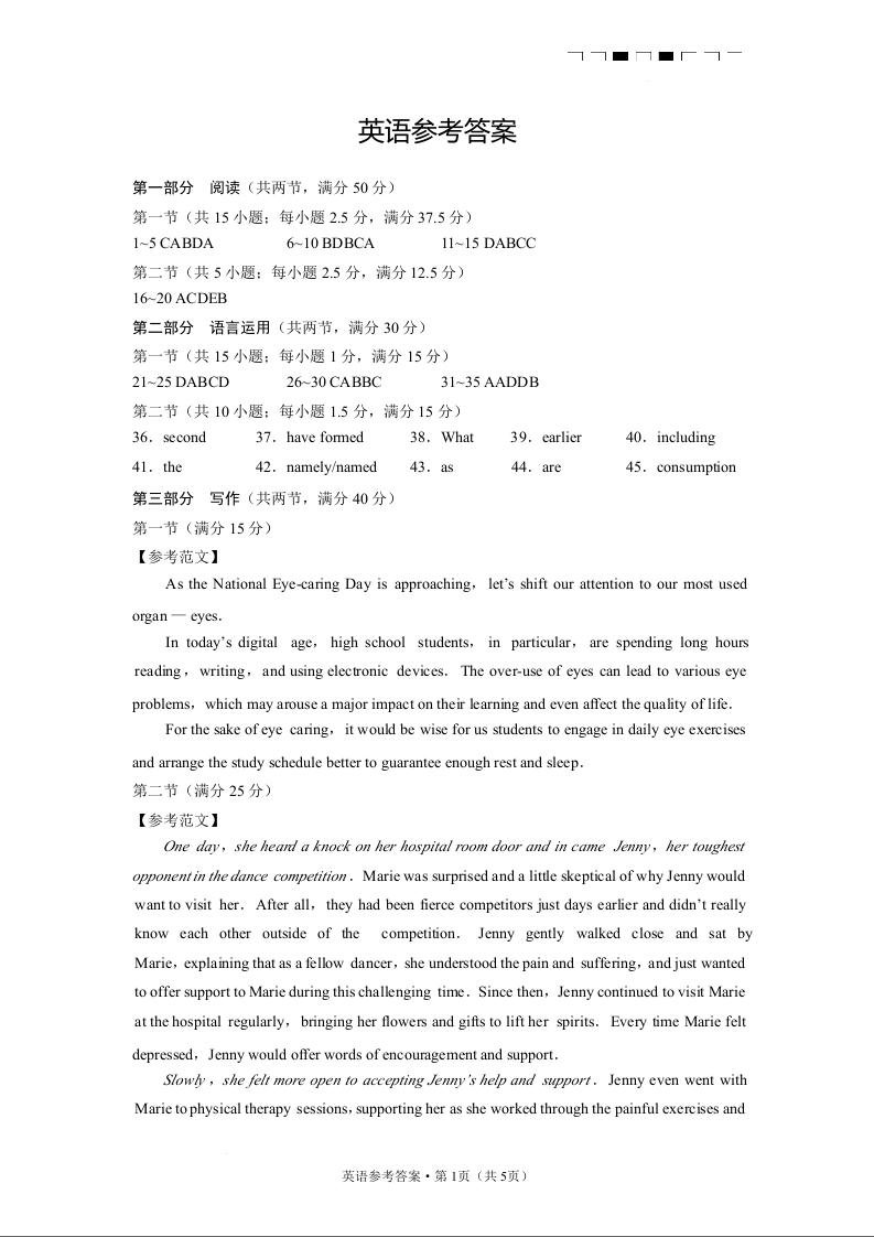 高三英语答案--云南师范大学附属中学2022-2023学年高三第十次高考适应性考试
