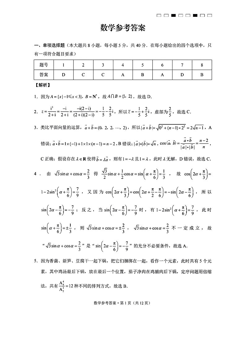高三数学答案--云南师范大学附属中学2023届高考适应性月考(八)