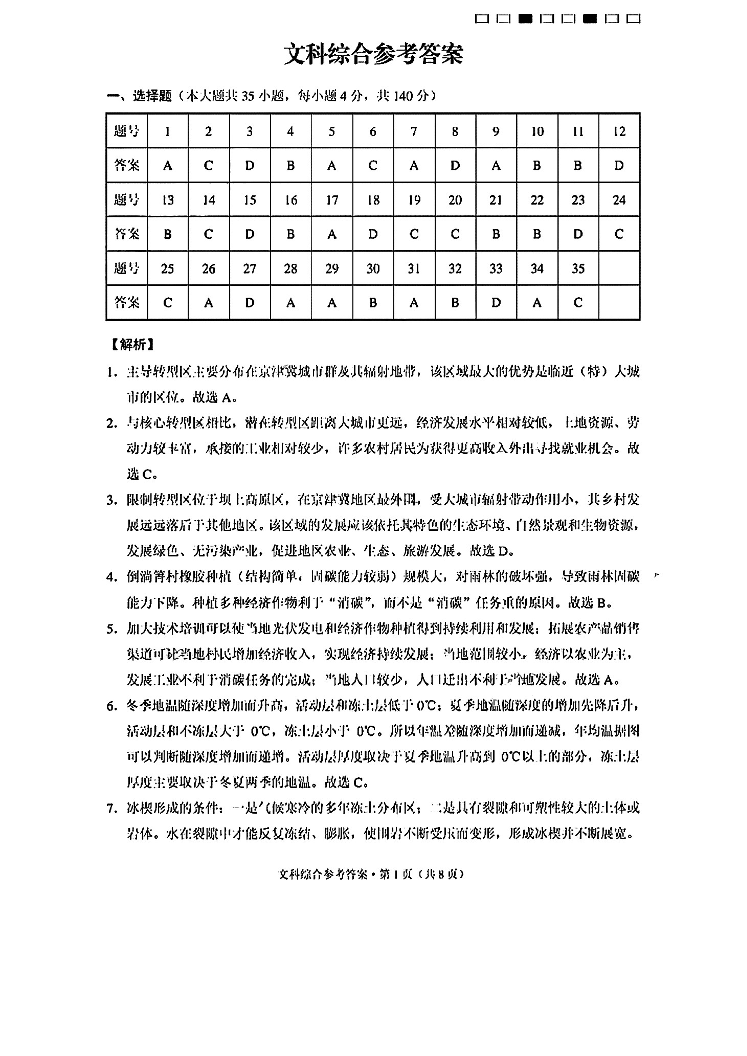 高三文综答案--云南师范大学附属中学2023届高考适应性月考(八)