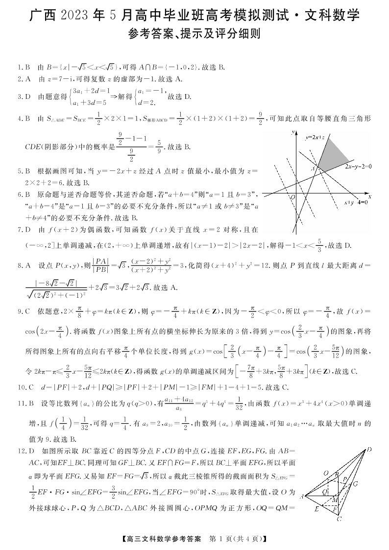 高三文数答案--广西2023年5月高中毕业班高考模拟测试(三模)