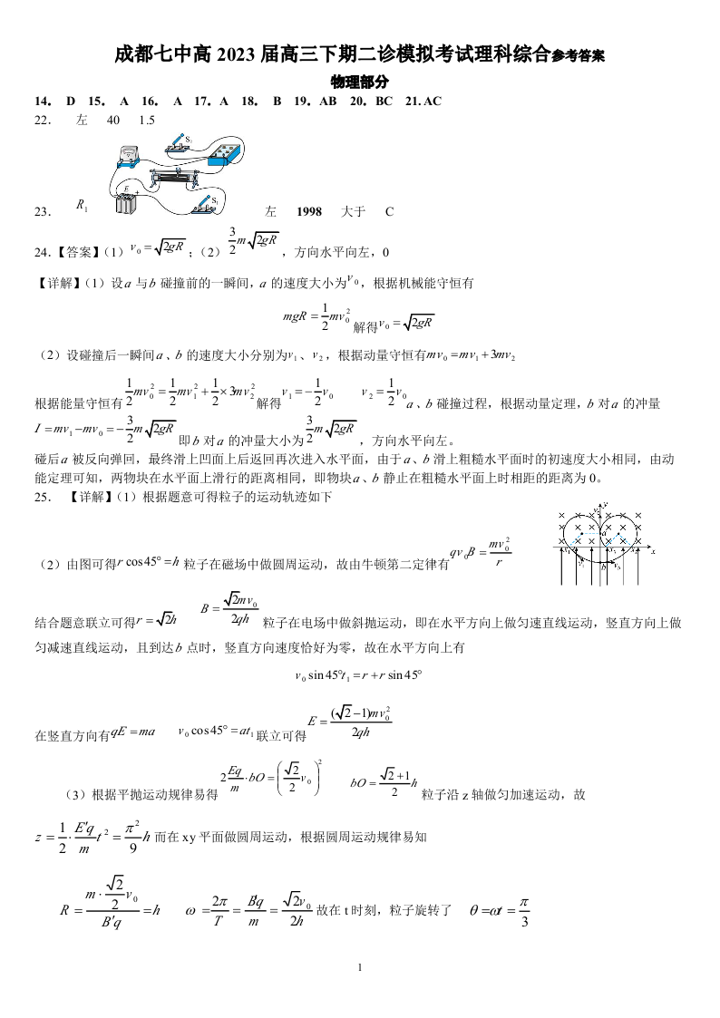 高三理综答案--四川省成都市第七中学2023届高三下学期二诊模拟考试