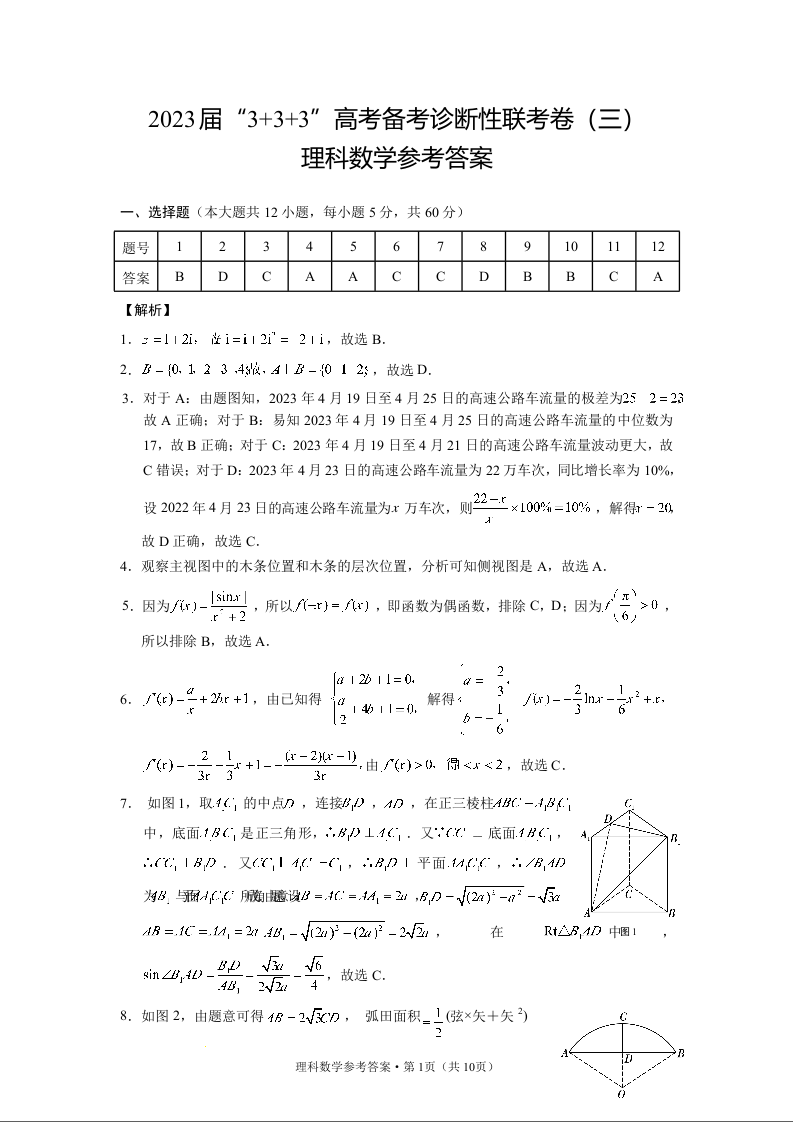 高三理数答案--贵州省贵阳市2023届高三3+3+3高考备考诊断性联考(三)