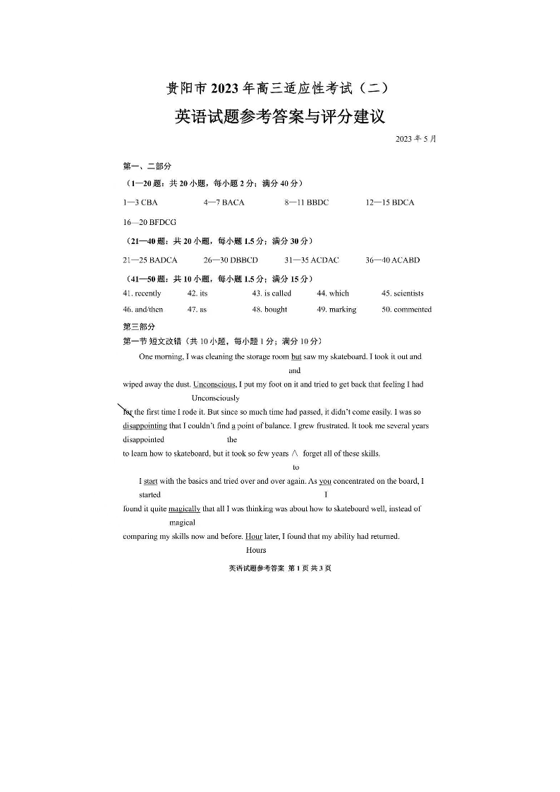 高三英语答案--贵州省贵阳市2023届高三适应性考试(二)