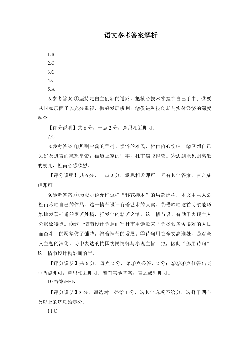 高三语文答案--四川省九市2023届高三三模