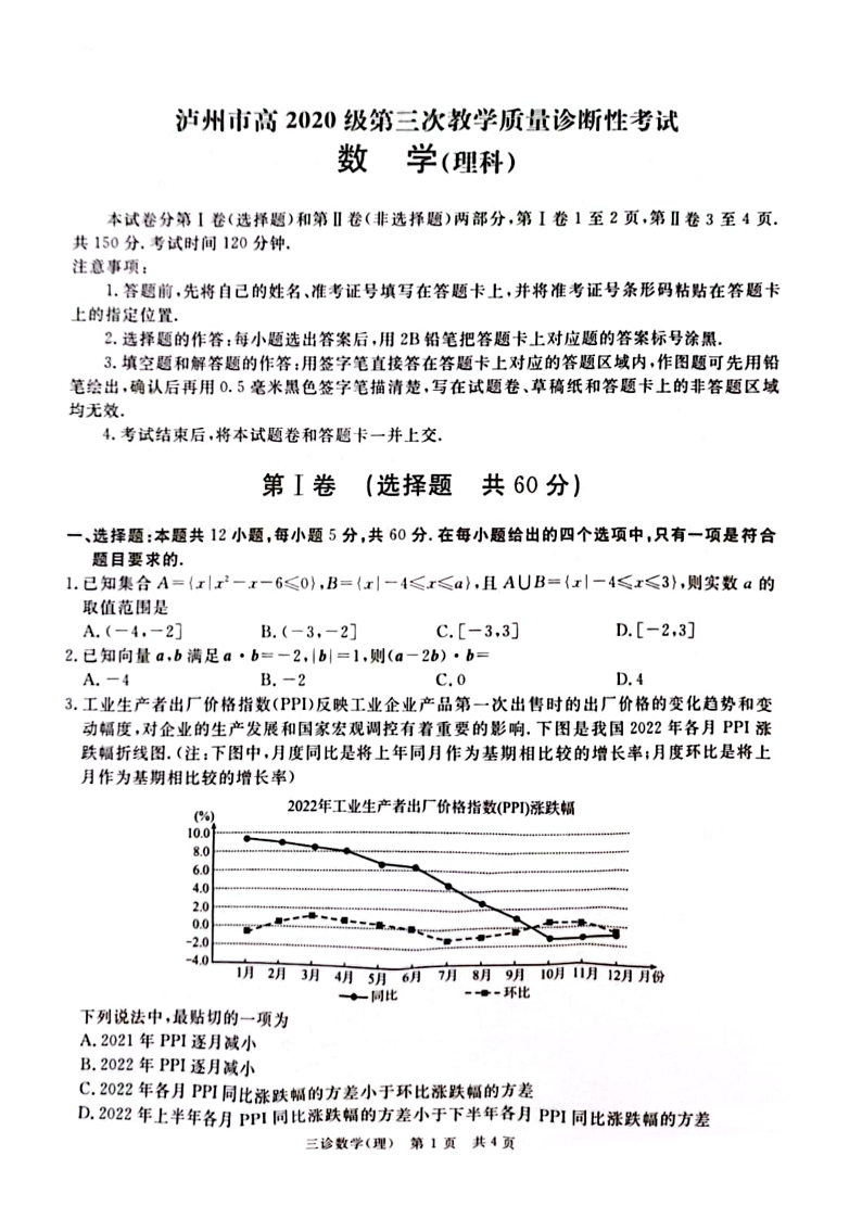 高三理数--四川省九市2023届高三三模