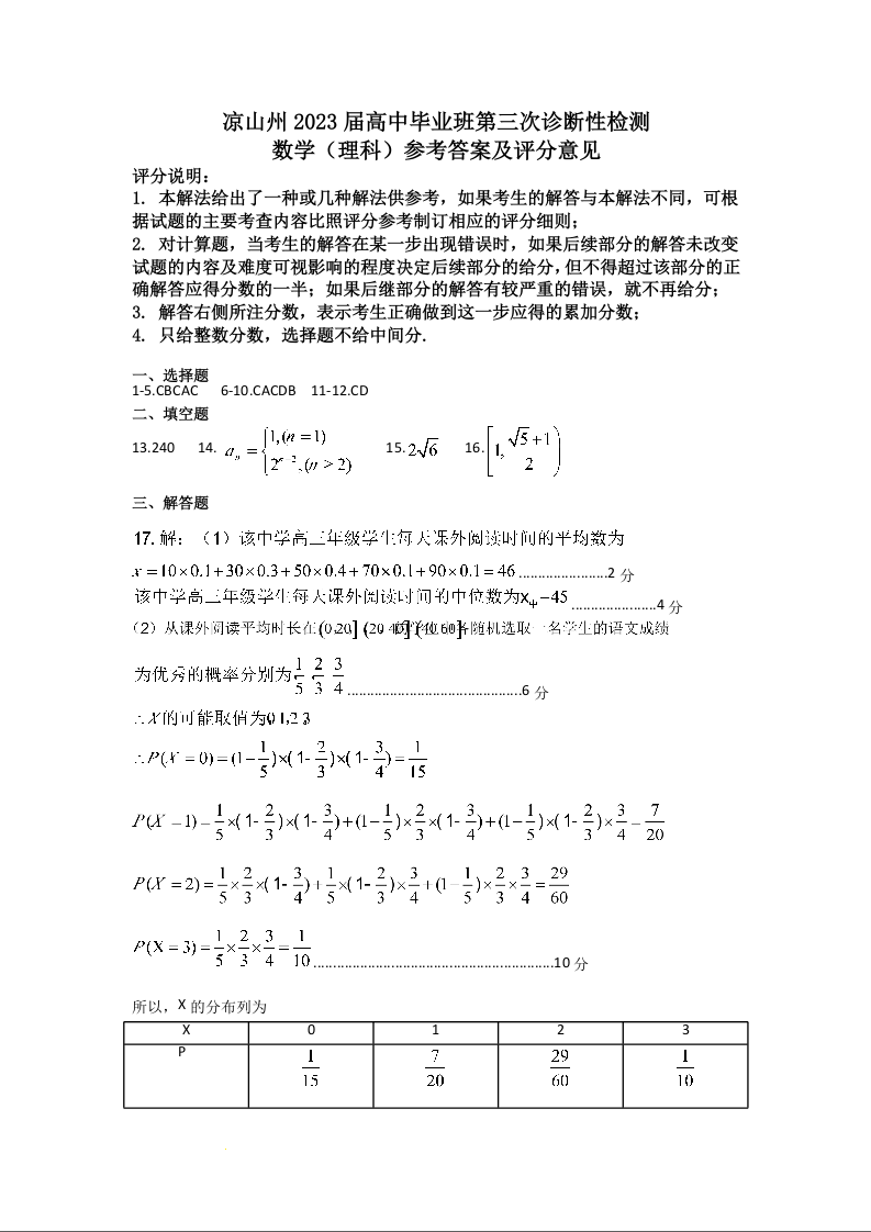 高三理数答案--四川省凉山彝族自治州2023届高三第三次诊断性检测