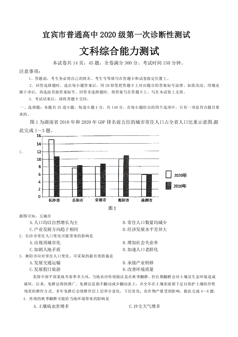 高三文综--四川省宜宾市2023届高三上学期第一次诊断测试
