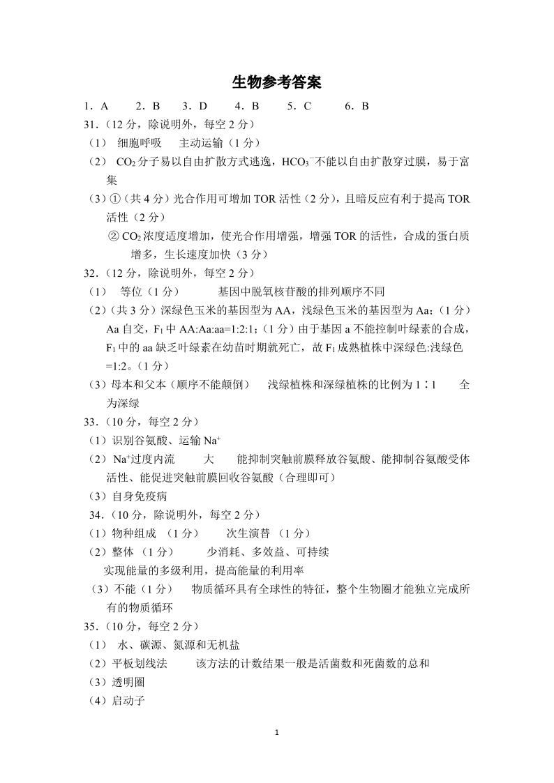 高三理综生物答案--云南省曲靖市2023届第二次教学质量检测
