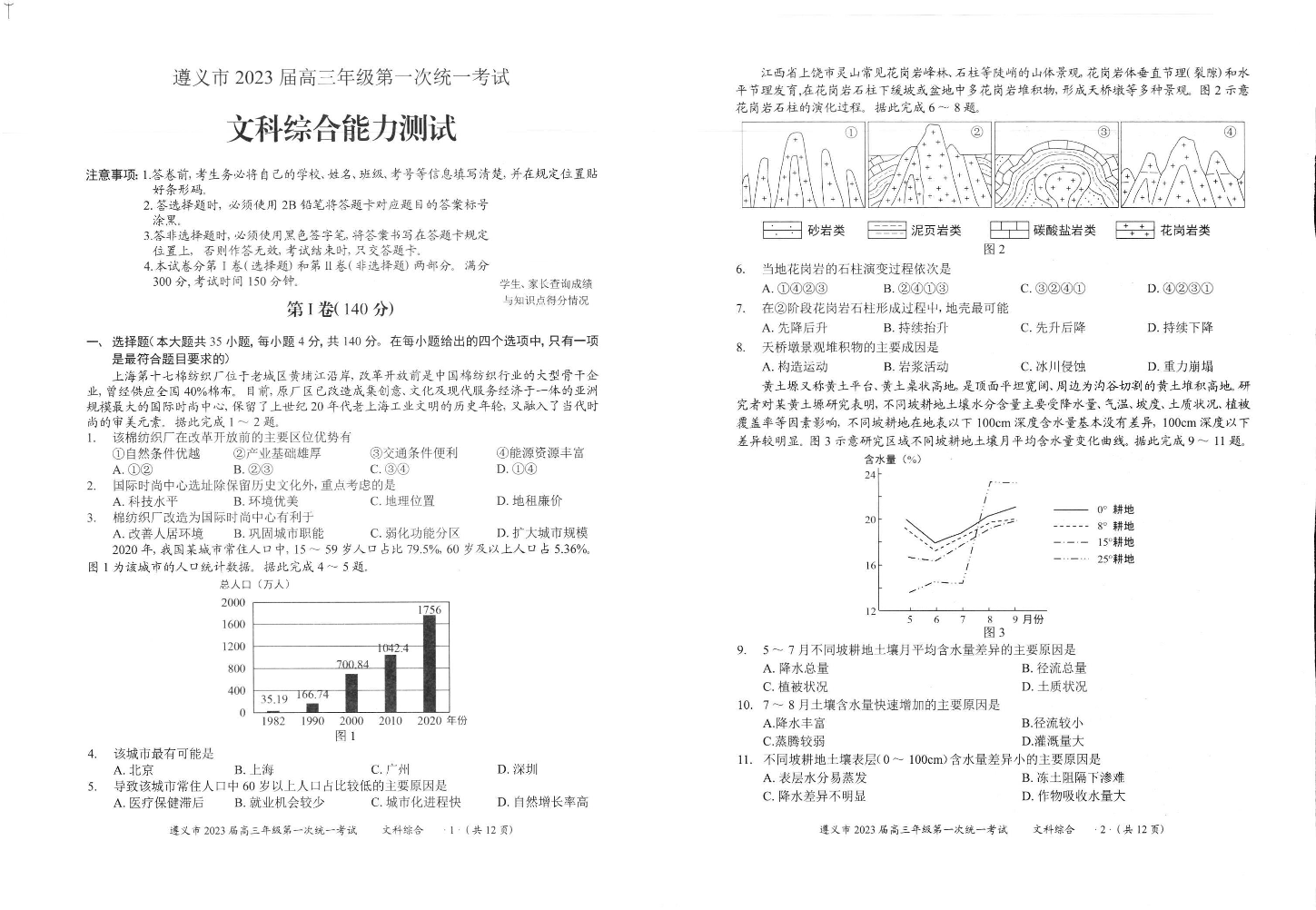 高三文综--贵州省遵义市2023届高三上学期第一次统一考试
