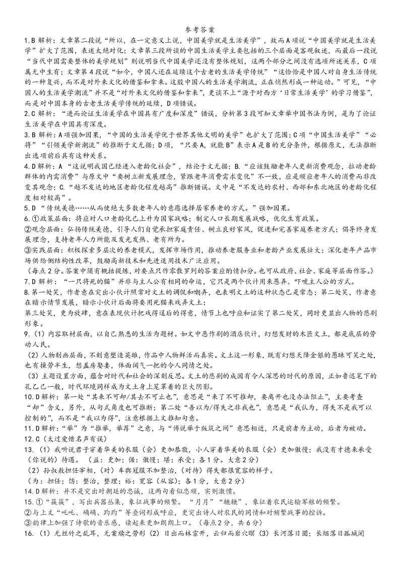 高三语文答案--四川省成都市第七中学2023高三上学期期中考试