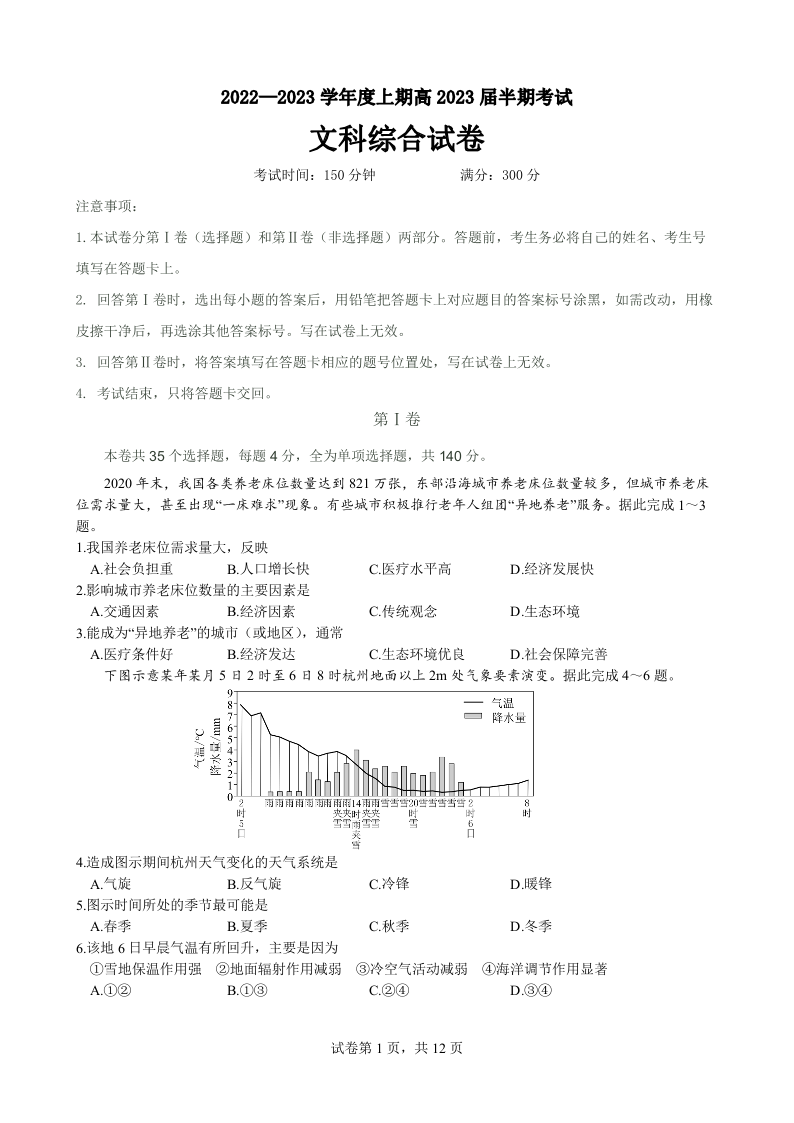 高三文综--四川省成都市第七中学2023高三上学期期中考试