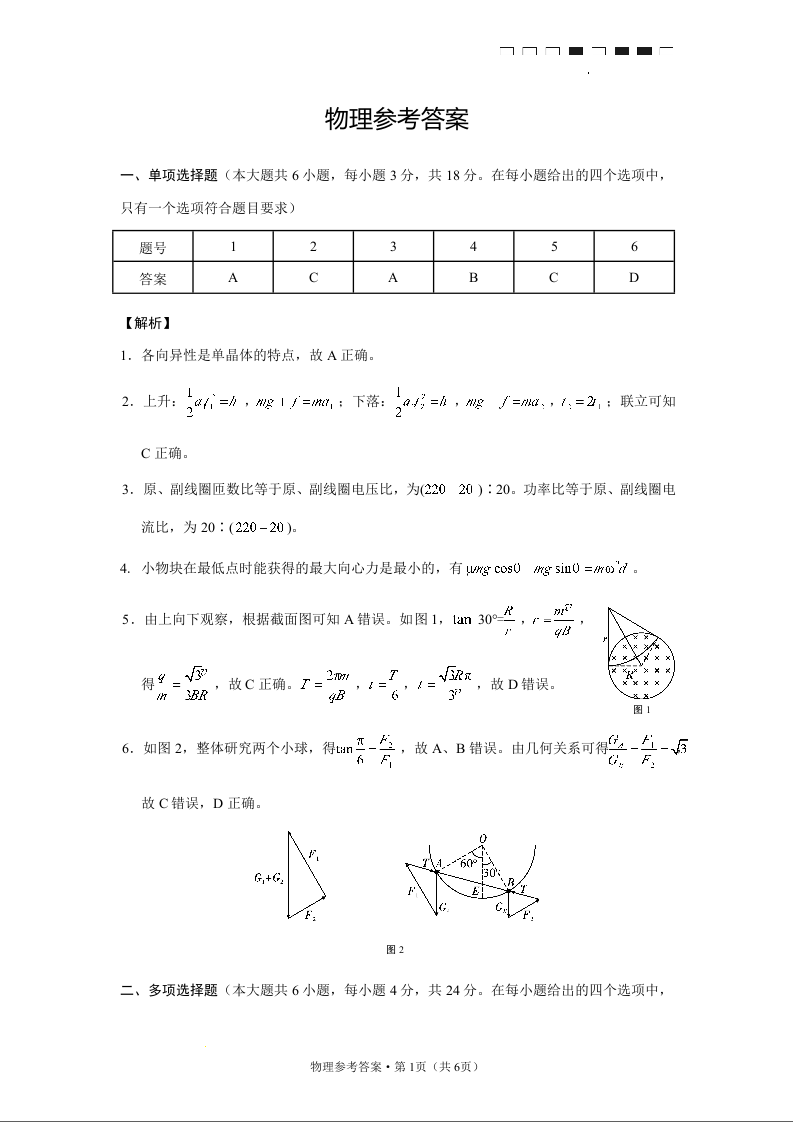 高三物理答案--云南省云师大附中2023届高三考适应性月考卷(一)