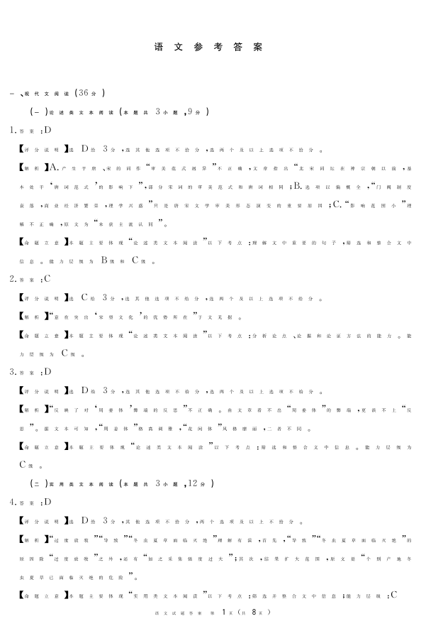 高三语文答案--四川省广安、遂宁、眉山、雅安、广元、资阳2023届高三上学期第一次诊断性考试