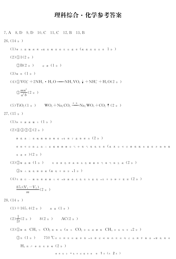 高三理综化学答案--四川省广安、遂宁、眉山、雅安、广元、资阳2023届高三上学期第一次诊断性考试