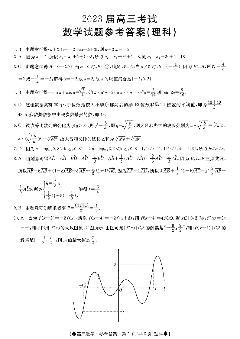 高三理数答案--四川省部分学校2023届高三上学期12月大联考
