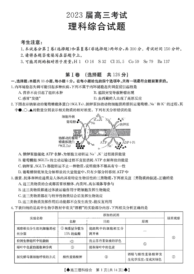 高三理综+答案--四川省部分学校2023届高三上学期12月大联考