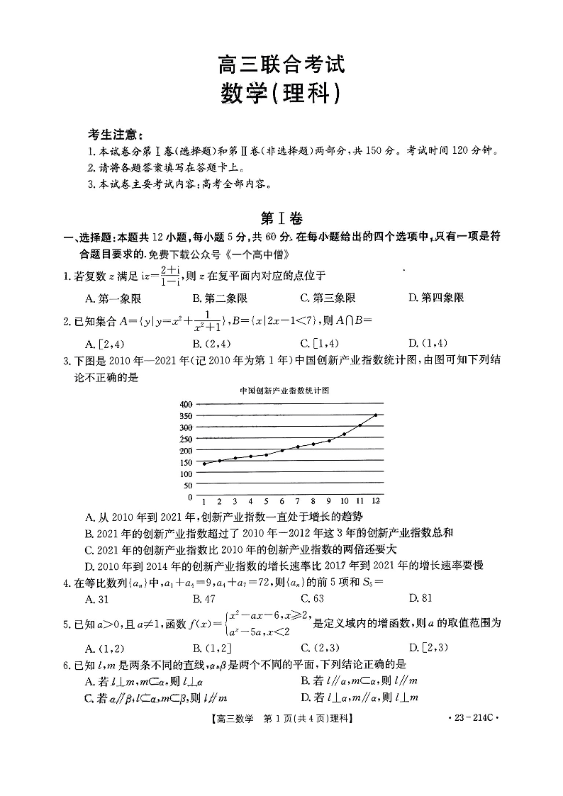 高三理数--贵州省毕节市部分学校2023届高三12月联合考试