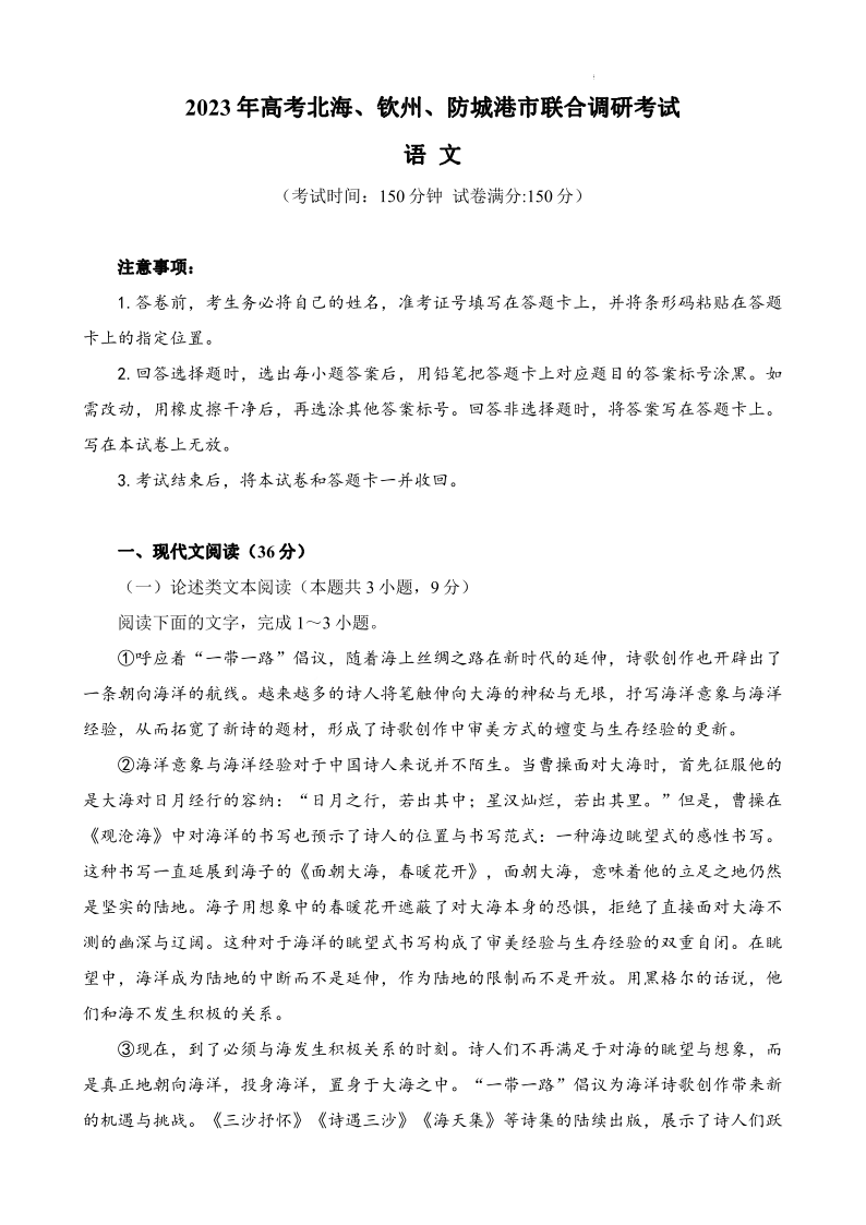 高三语文--广西桂林、崇左市2023年高考联合一模调研考试
