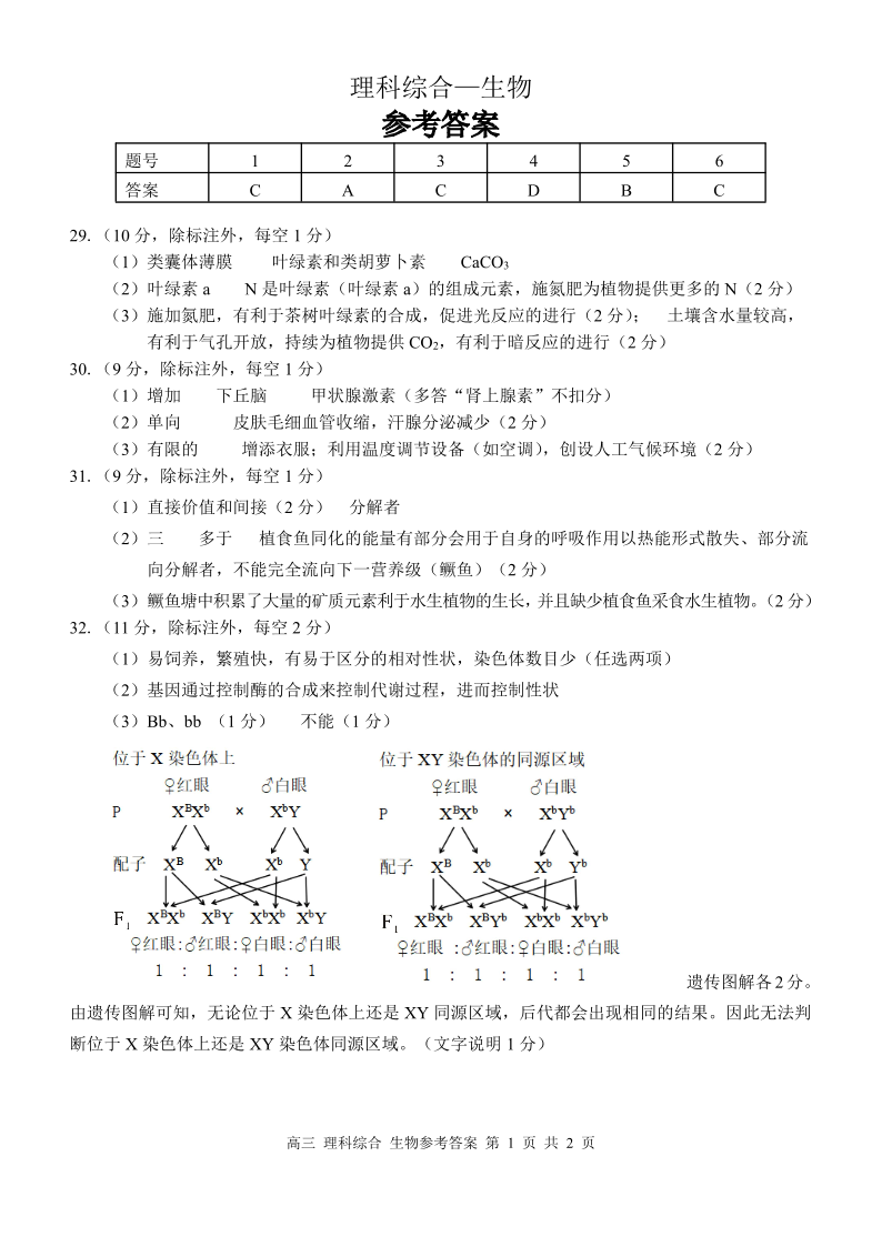 高三理综答案--广西桂林、崇左市2023年高考联合一模调研考试