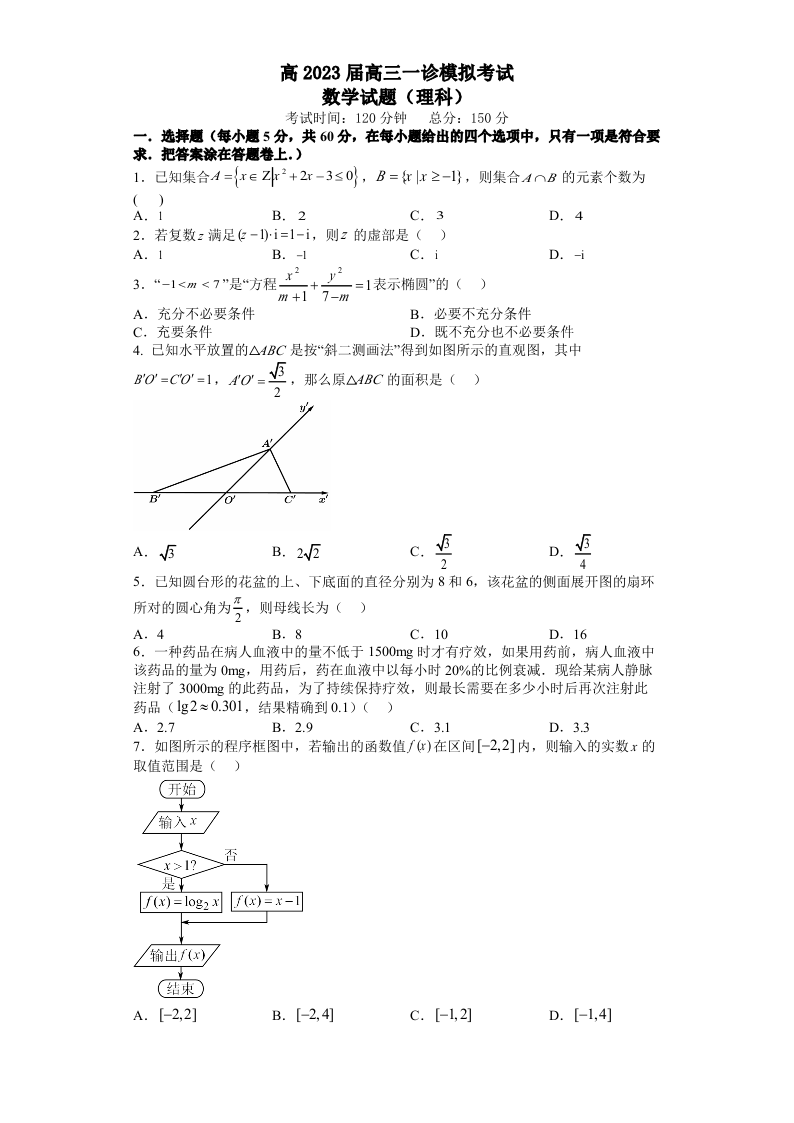 高三理数--四川省成都七中2023届高三一诊模拟考试