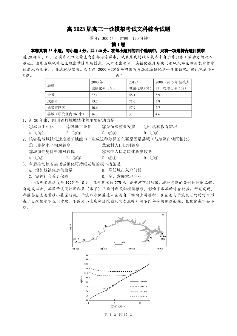 高三文综--四川省成都七中2023届高三一诊模拟考试