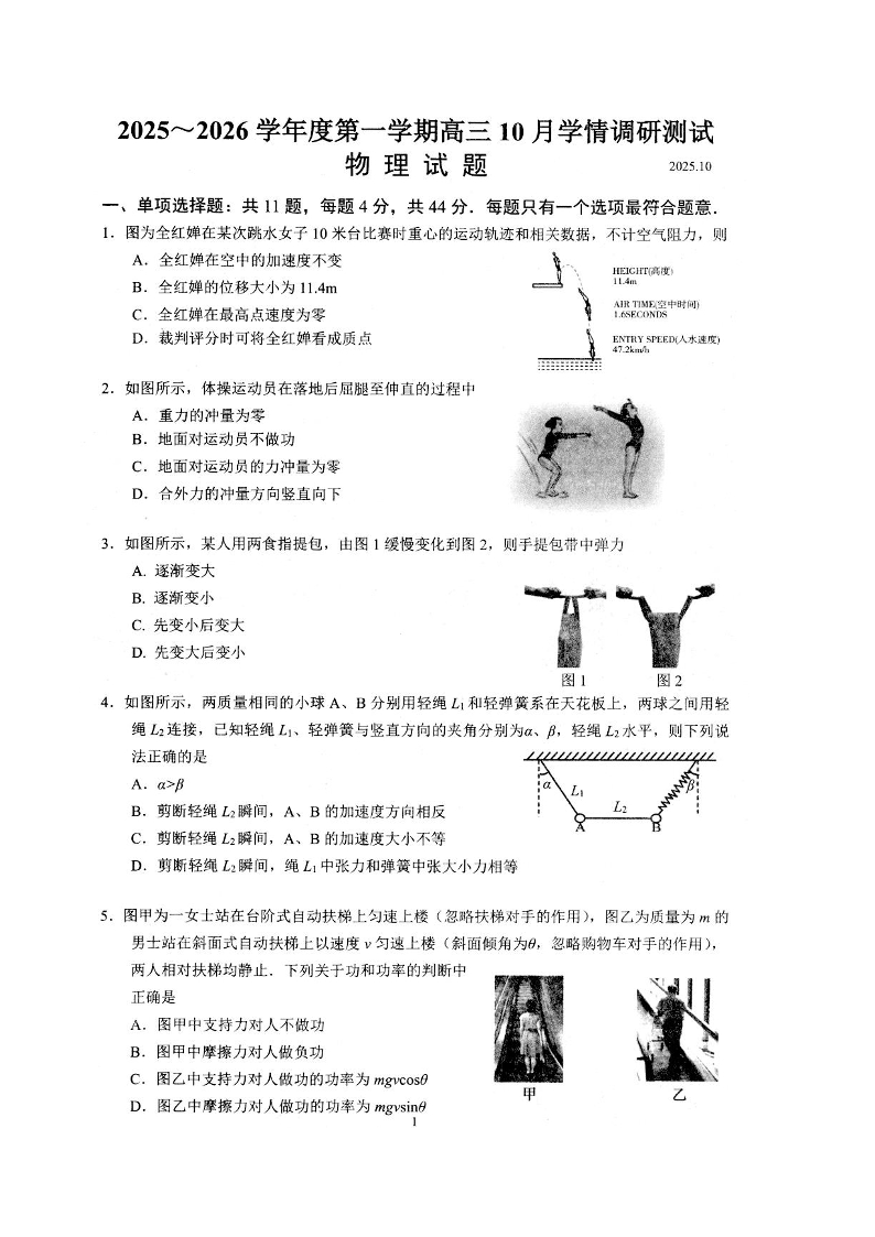 高三物理+答案--江苏省扬州市高邮市2026届高三上学期10月学情调研测试