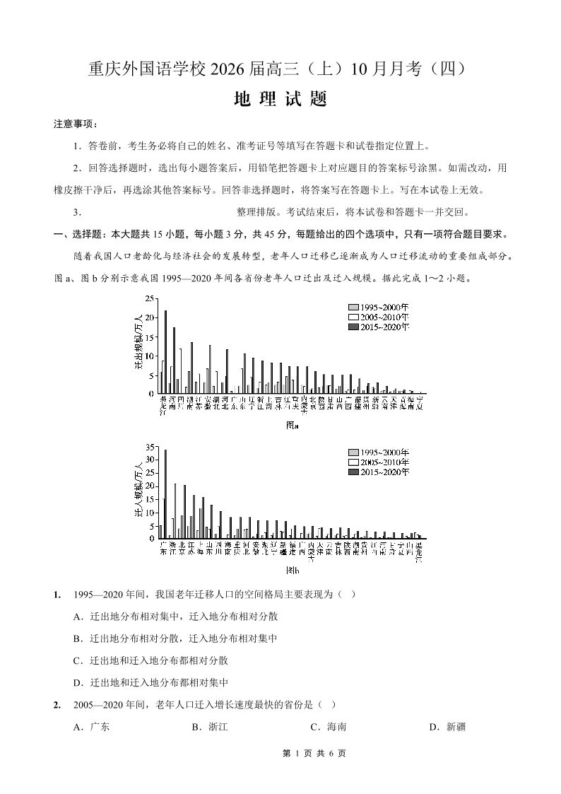 高三地理--重庆实验外国语学校2026届高三10月月考(四)