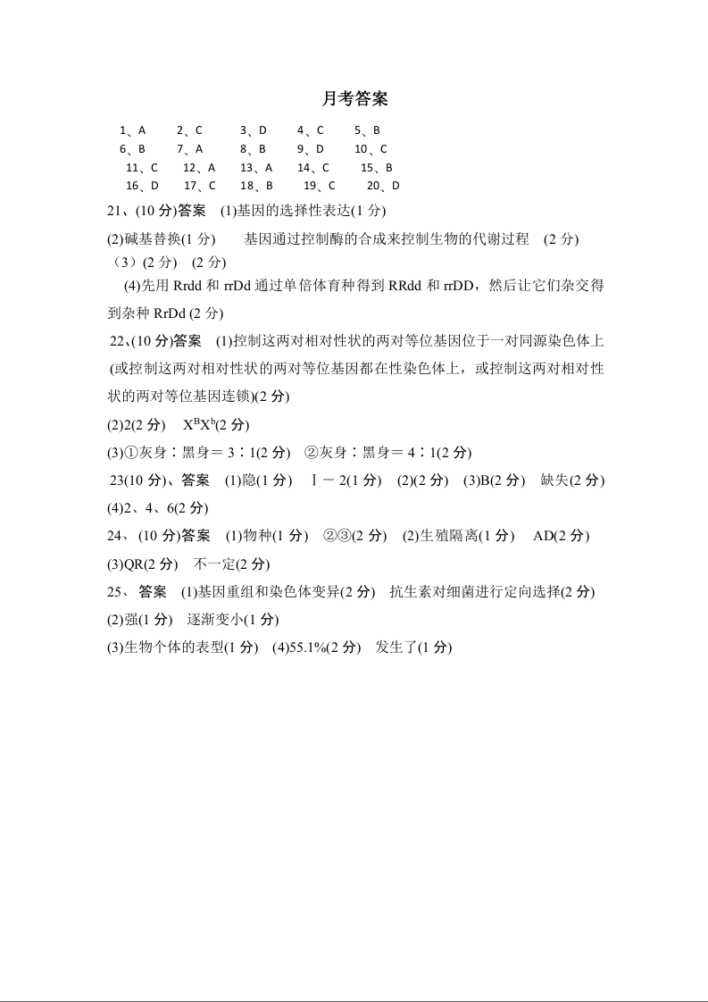 高二生物答案--重庆市万州二中2025-2026学年高二上学期10月月考试题
