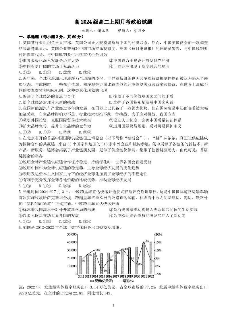高二政治--重庆市万州二中2025-2026学年高二上学期10月月考试题