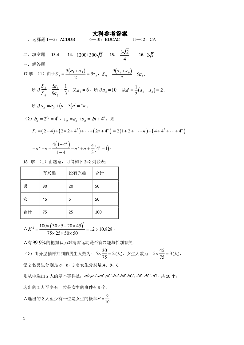 高三文科数学答案--四川省成都市第七中学2023高三上学期入学考试