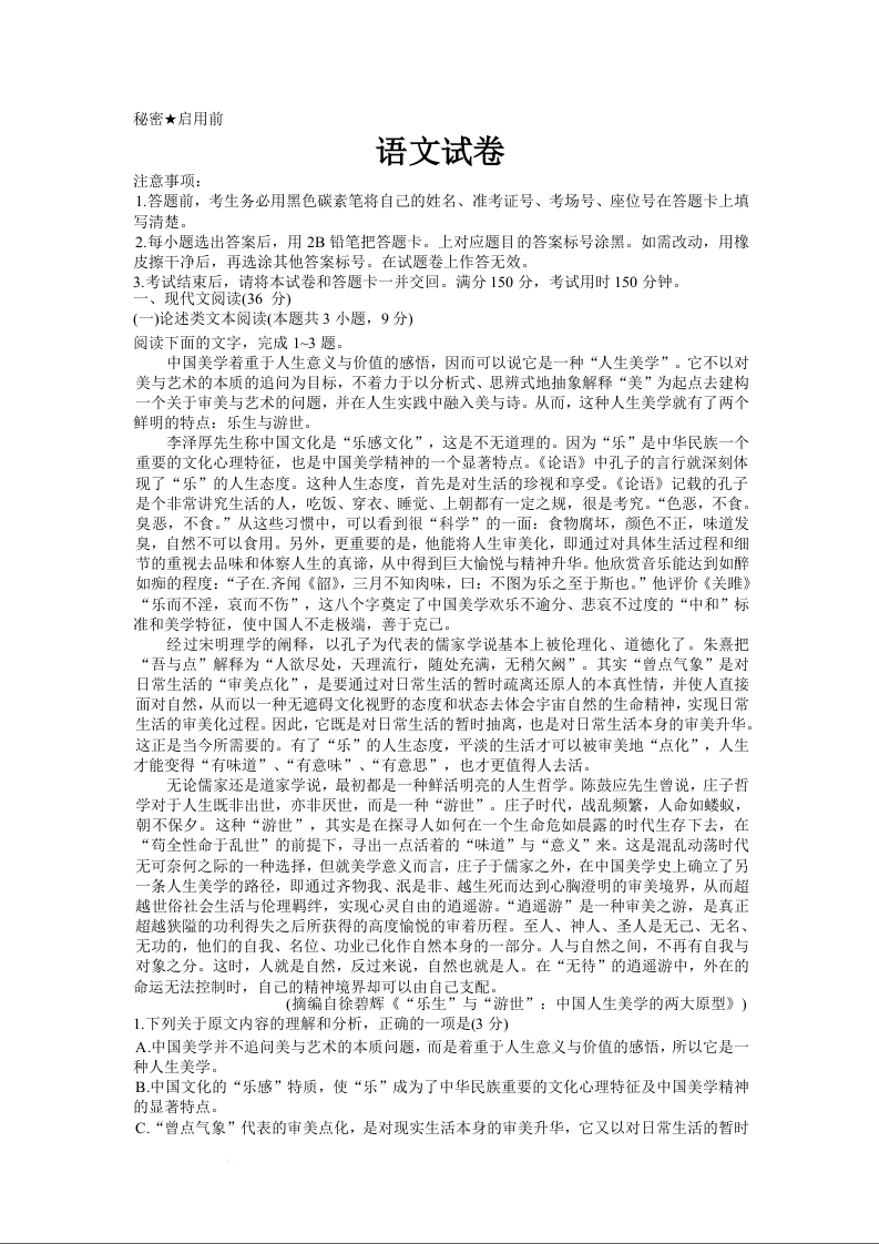 高三语文+答案--云南师范大学附属中学23届高三上学期适应性月考卷(二)